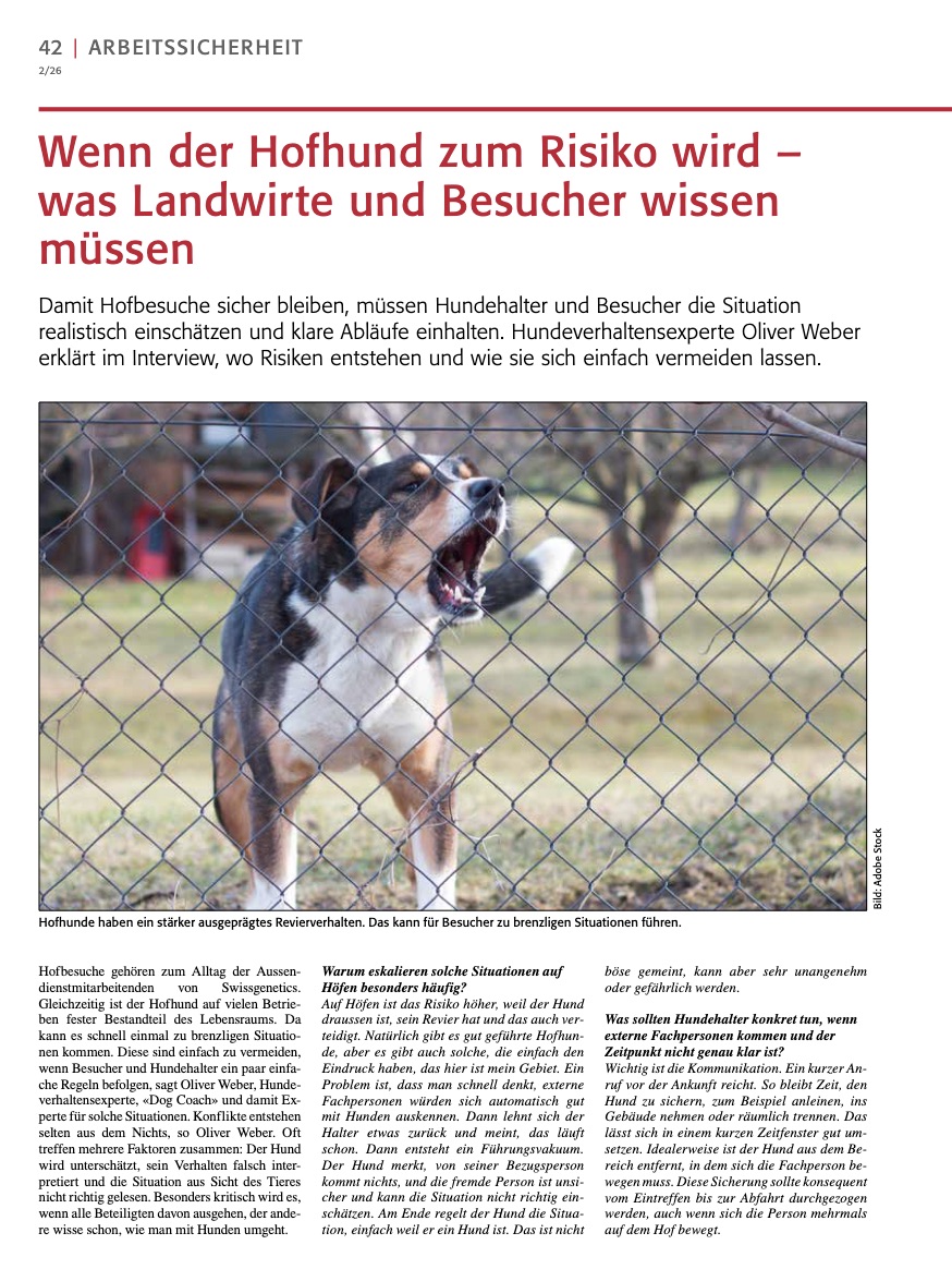 Interview Fachbeitrag: Wenn der Hofhund zum Risiko wird – was Landwirte und Besucher wissen müssen