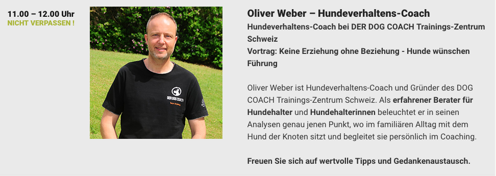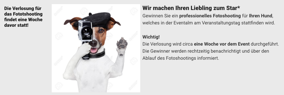 An diesem Event erwarten Dich hochkarätige Vorträge, Live Acts und ein toller Wettbewerb. Gewinne ein professionelles Fotoshooting mit Deinem Hund.