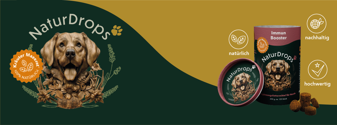 NaturDrops ist eine Schweizer PetFood-Marke, die sich auf natürliche Nahrungsergänzungsmittel für Hunde spezialisiert hat, die in Form von funktionalen Leckerlis besonders einfach und alltagstauglich verabreicht werden können.