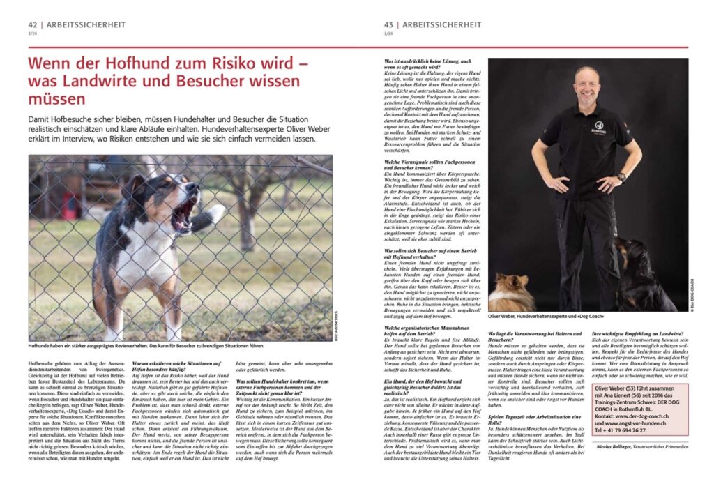 In diesem spannenden Artikel zeigt Hundeverhaltensexperte Oliver Weber eindrücklich, warum es auf Höfen schnell zu kritischen Situationen kommen kann – und wie einfach sich diese mit klarer Kommunikation, festen Abläufen und dem richtigen Verständnis für Hundeverhalten vermeiden lassen.